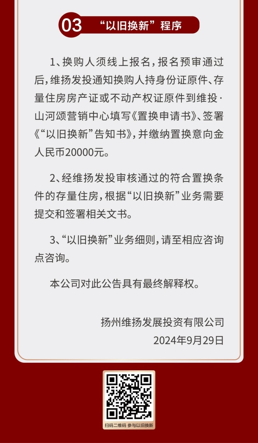 揚州維揚發(fā)展投資有限公司商品住房“以舊換新”公告