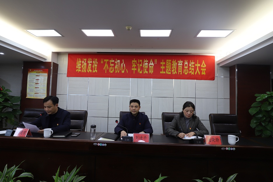 1月17日下午,維揚發(fā)投召開“不忘初心、牢記使命”主題教育總結大會,區(qū)委第八巡回指導組組長趙曉靜同志、副董事長(主持工作)劉迪平、總經(jīng)理趙建理出席會議,副總經(jīng)理姜晉堯、全體干部職工參加會議。 本次會議深入學習貫徹中央和省、市、區(qū)“不忘初心、牢記使命”主題教育總結大會精神,認真回顧總結公司主題教育工作,鞏固深化主題教育成果,激勵公司全體黨員干部職工,自覺踐行初心和使命。 會議指出,主題教育開展以來,公司上下認真落實中央和省市區(qū)部署要求,在區(qū)委主題辦、區(qū)委第八巡回指導組的精心指導和嚴格督導下,按照區(qū)委的部署安排,深入貫徹“守初心、擔使命,找差距、抓落實”總要求,聚焦“理論學習有收獲、思想政治受洗禮、干事創(chuàng)業(yè)敢擔當、為民服務解難題、清正廉潔作表率”具體目標,推動主題教育達到了預期目的,取得了顯著成效。 公司黨支部書記、副董事長(主持工作)劉迪平在會上強調,主題教育雖然暫告一段落,但守初心、擔使命永遠在路上。公司上下要以這次主題教育為新的起點,不斷深化自我革命,持續(xù)推動維揚發(fā)投不忘初心、牢記使命。一是提高政治站位,確保思想認識到位。從樹牢“四個意識”、堅定“四個自信”、堅決做到“兩個維護”的高度,切實把學習成效體現(xiàn)到增強黨性、提高能力、改進作風、推動工作上來。二是堅持問題導向,確保整改落實到位。堅持以正視問題的自覺和刀刃向內的勇氣,抓好突出問題的專項整治。三是完善相關制度,形成長效機制。結合公司實際,制定黨員干部“不忘初心、牢記使命”制度,形成長效機制并長期堅持下去,切實鞏固拓展主題教育成果。 最后,會議號召公司全體干部職工不忘初心、牢記使命,為全面貫徹落實區(qū)委、區(qū)政府決策部署,推進邗江城市建設高質量發(fā)展貢獻力量。